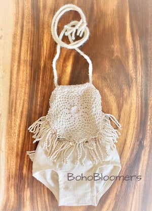 Definitely my more gypsy bohemian inspired piece. If you look closely at the photos of the babies, the romper now has shells on the front! See the *details photo for an up close shot.